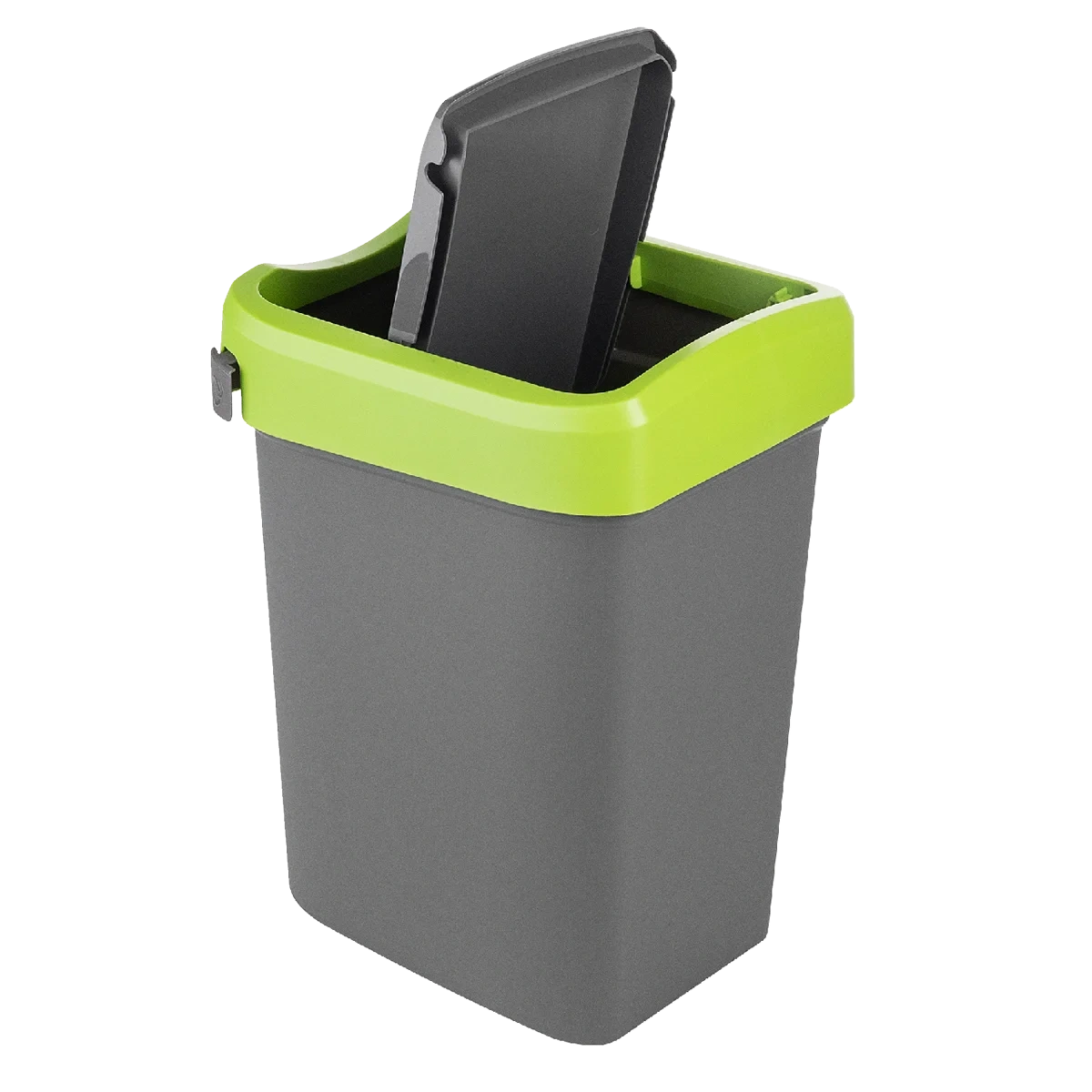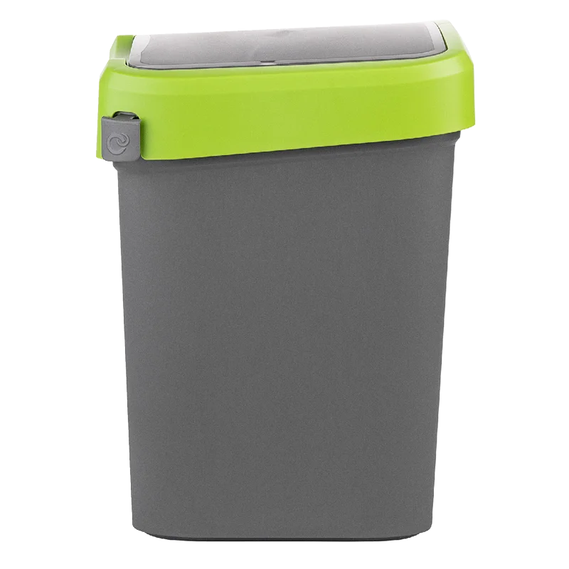 METRO PROFESSIONAL Контейнер для мусора графитно-зеленый, 25 x 20 x 35 см, 10 л изготовлен из прочного пластика. Удобная система открывания крышки позволит выбросить мусор в ведро даже с занятыми руками, просто толкнув створку вниз. Крышка может фиксироваться в открытом положении для крупного мусора. Цветовая дифференциация ободов незаменима для организации раздельного сбора мусора дома. Контейнер для раздельного сбора мусора имеет специальное крепление для мусорных пакетов, легко моется, блокирует неприятные запахи, препятствуя их распространению. Контейнер отлично подойдет для использования в офисе и гармонично впишется в современный домашний интерьер.