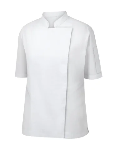 Для пошива METRO PROFESSIONAL Куртка повара короткий рукав белая, L использована высококачественная смесовая ткань. Отличается практичностью, прочностью и износостойкостью. Крой прямой, двубортный, подходящий равным образом для мужчин и женщин благодаря тому, что съемные пуговицы-пукли можно нашивать на любую сторону.