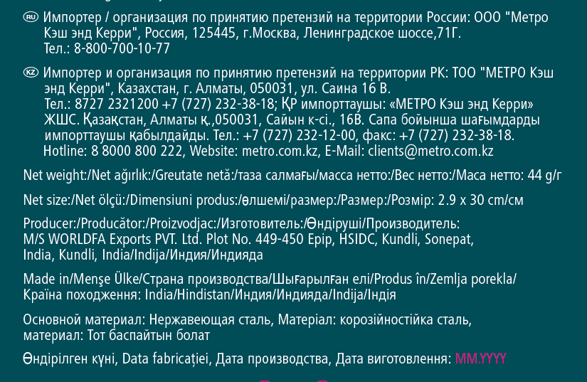 | Бренд | Metro Professional |