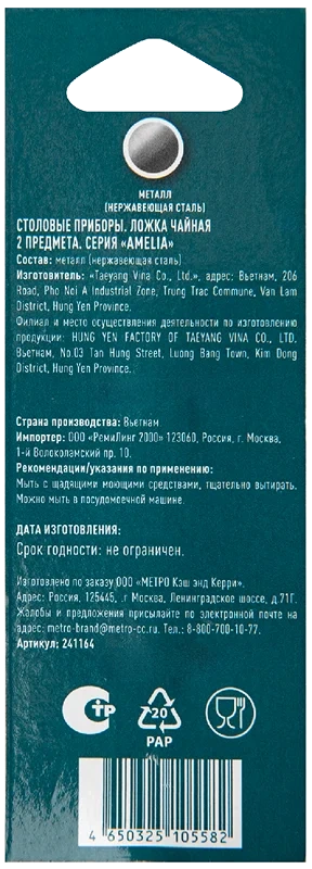 | Комплектация | ложка чайная - 2шт. |