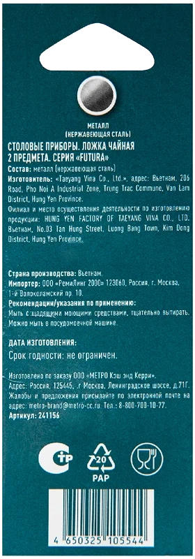 Ложки выполнены из высококачественной нержавеющей стали, очень прочные, не гнутся, имеют длительный срок службы, отлично сохраняют эксплуатационные свойства и внешний вид. Пищевая нержавеющая сталь не имеет запаха и сохраняет вкус и аромат продуктов натуральными. Ложки чайные с выпуклостью в симметричном формате и тщательно закругленными краями, обеспечивающими больший комфорт в использовании. Утонченные, привлекательные изогнутые линии приборов объединяют в себе отличную эргономику и изысканный внешний вид.