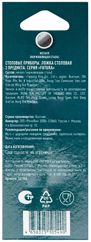 | Комплектация | ложка столовая - 2шт. |