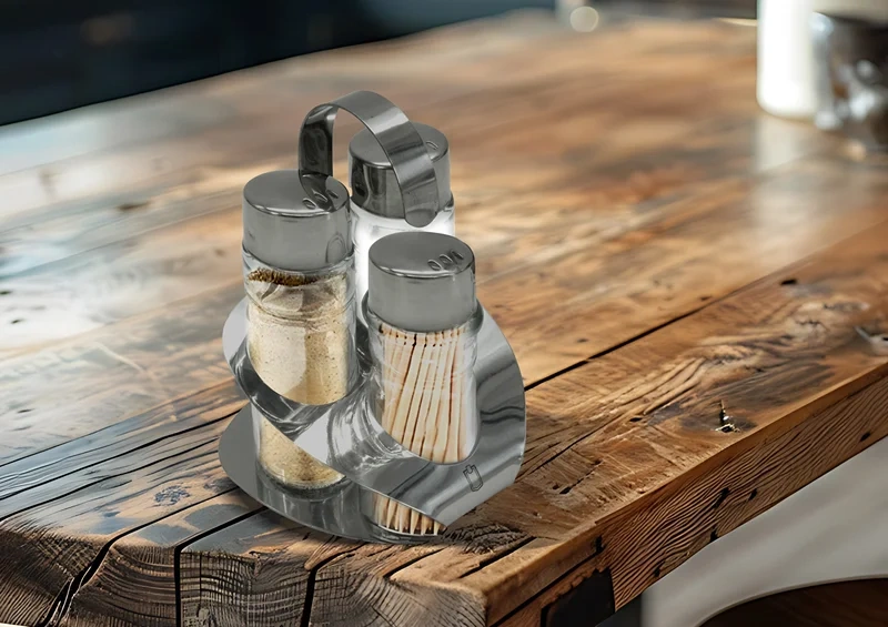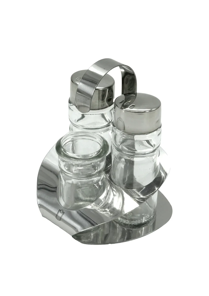 METRO PROFESSIONAL Набор для специй, 4 предмета, предназначен для использования на столе. В комплект входят солонка, перечница, емкость для зубочисток и подставка.