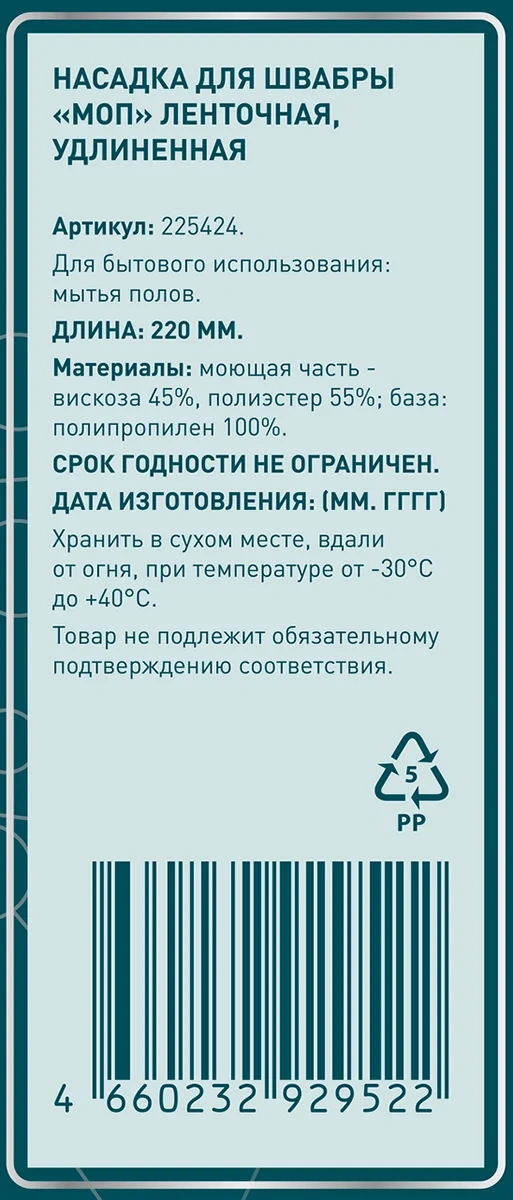 Насадка Моп с большим количеством вискозы - очень быстро сохнет, что избавляет от неприятного запаха. Предназначена для мытья деликатных поверхностей, а также деревянных полов, кафеля, ламината. Отлично поглощает воду, хорошо промывается. Эффективна без использования моющих средств, а поэтому незаменима в доме, где есть маленькие дети. Резьба насадки сделана из особо прочного материала.
