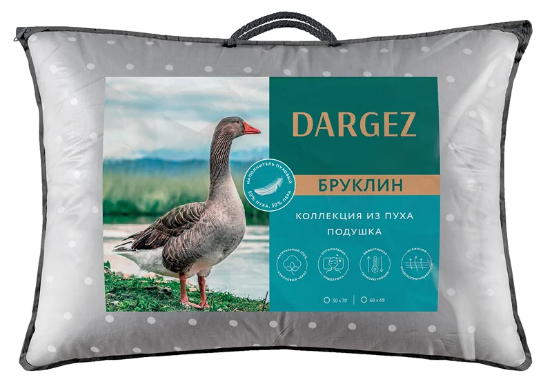 Одной из главных особенностей этой подушки является ее наполнитель – синтетический наполнитель Эстрелль, разработанный компанией Даргез. Он производится по специальной технологии, при которой волокна наполнителя внутри имеют воздушный канал в продольном направлении. Это делает их более пышными и мягкими, а также способствует повышенному воздухообмену. Материал является современным и неприхотливым, легко ухаживать за ним и он сохраняет свою форму длительное время. Даже после многочисленных стирок подушка остается мягкой и удобной.