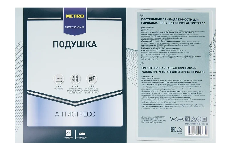 METRO PROFESSIONAL Подушка Modern Collection, 50 x 70 см – идеальное решение для тех, кто ищет комфорт и уют во время сна. Мягкая и воздушная принадлежность станет отличным дополнением к вашей постели, обеспечивая правильное положение головы и шеи для качественного отдыха. Ее можно использовать дома, в гостиницах, отелях и других заведениях.