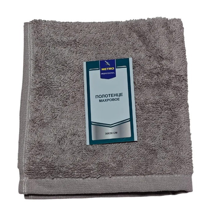 METRO PROFESSIONAL Полотенце махровое бежево-коричневое хлопок 600 г/м2, 30 х 30см