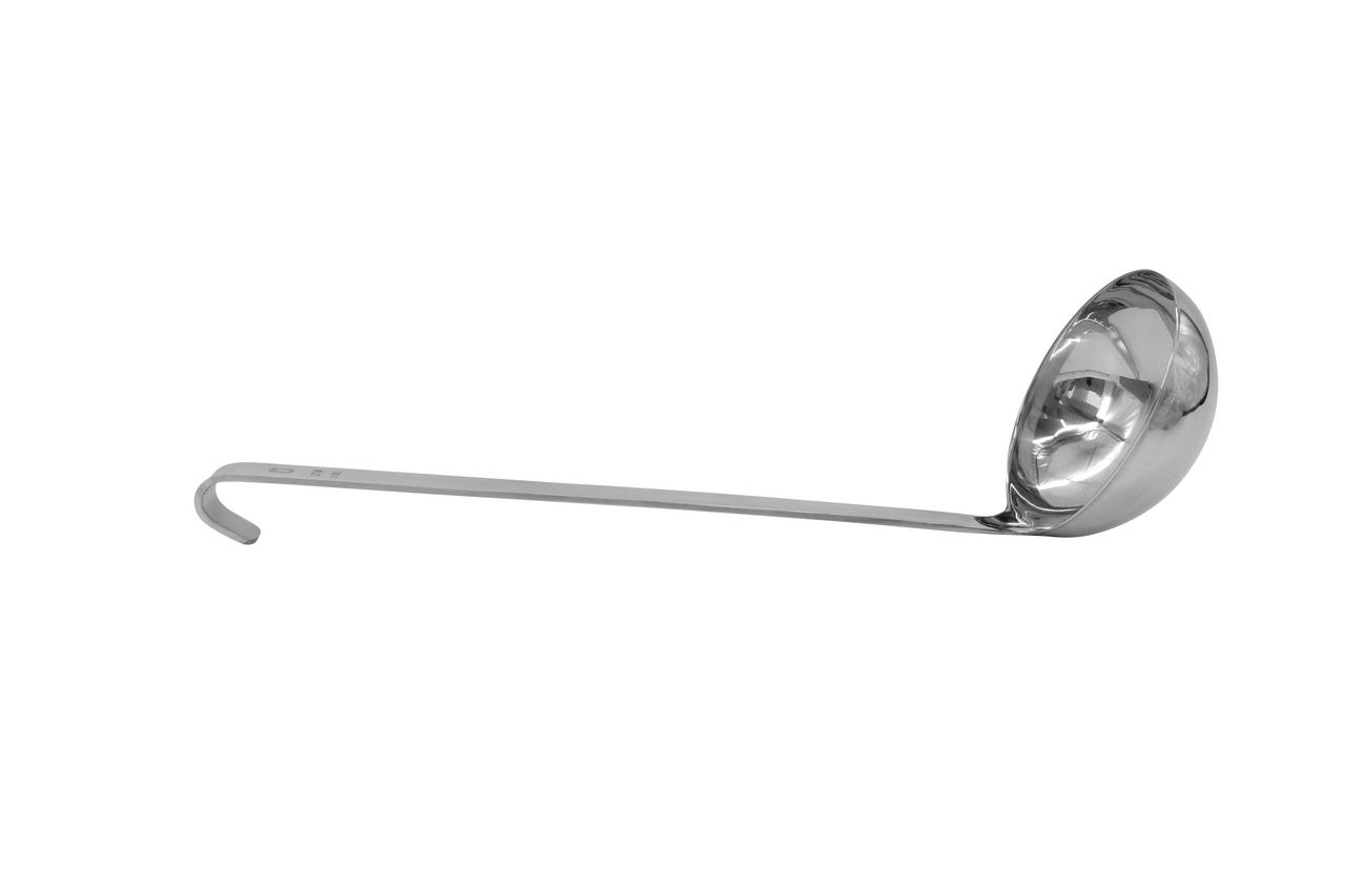 METRO PROFESSIONAL Половник, 14 см — незаменимый инструмент на кухне каждой хозяйки, который идеально подходит для порционной раздачи первых блюд. Изделие оснащено эргономичной ручкой для максимально эффективного использования. Конец ручки изогнут, что позволяет без лишних хлопот хранить его на специальном креплении над столешницей. Подвешивая инструмент, вы также обеспечиваете его гигиеничность за счет отсутствия лишней влаги, благодаря которой активно размножаются вредоносные бактерии. Кроме того, половник совершенно нетребователен в уходе. Чтобы изделие сохраняло эффектный внешний вид, достаточно мыть его вручную или в посудомоечной машине с использованием моющего средства для посуды. Половник изготовлен из высококачественной нержавеющей стали, что делает его особенно прочным, долговечным и устойчивым к износу. Нержавеющая сталь — великолепный материал, прекрасно справляющийся с резкими перепадами температур, устойчивый к механическому воздействию, появлению коррозии. Поэтому изделие сможет сохранить свой презентабельный внешний вид на протяжении долгого времени. Кроме того, в отличие от других материалов, нержавеющая сталь не склонна к окислению, она не взаимодействует с пищевыми продуктами, не портит их вкусовые качества и не выделяет неприятный запах и вредные для здоровья вещества.