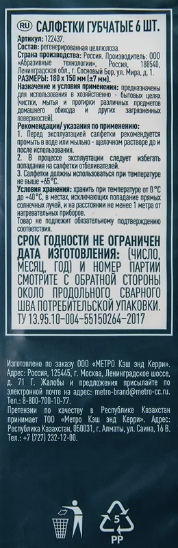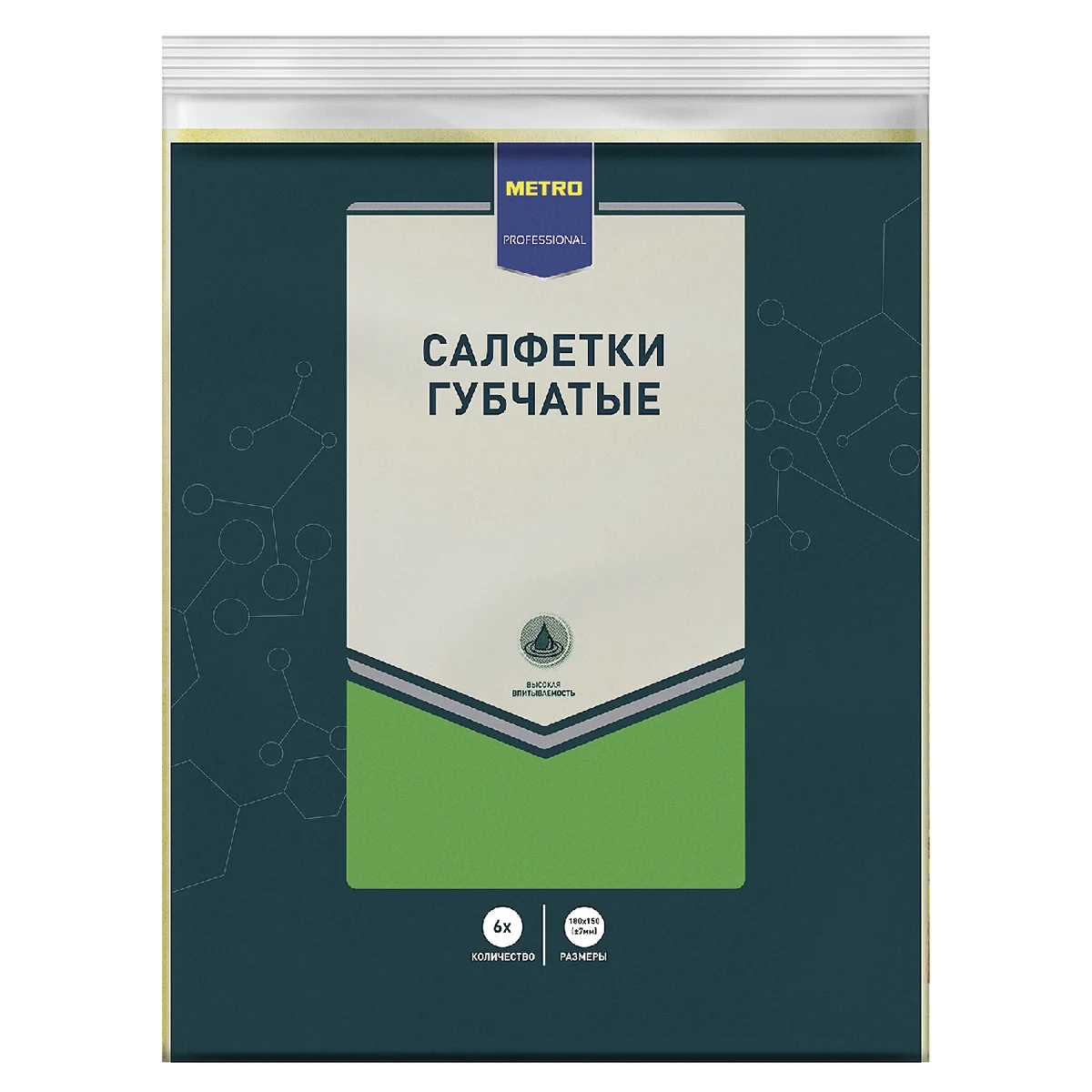 METRO PROFESSIONAL Салфетки губчатые, 18 x 15 см, 6 шт. идеально подходят для кухни, ванны, офисной техники, автомобиля и многих других мест. С их помощью можно быстро и тщательно очистить поверхность любого типа, в том числе зеркала, стекла и люстры. При этом их можно использовать в паре с любыми моющими средствами. Немаловажно, что такие изделия не оставляют разводов и волокон.