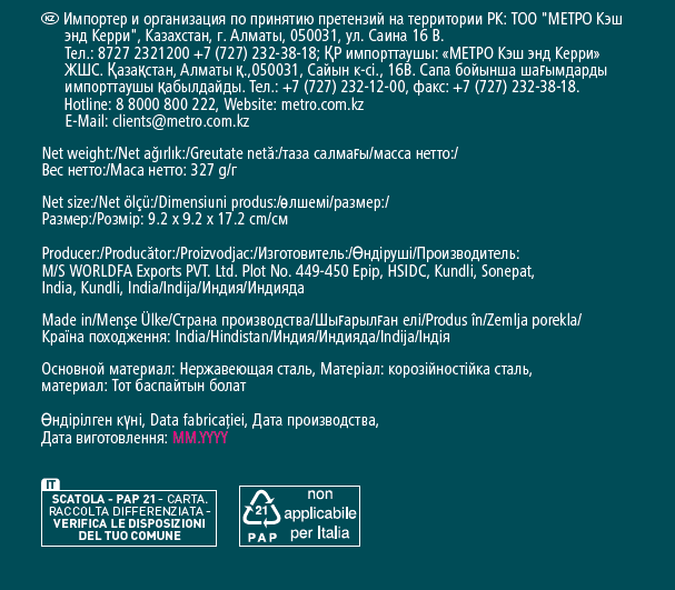 Представляет собой вместительную емкость, предназначенную для эффектного смешивания коктейльных ингредиентов. Это главный инструмент профессионального бармена, который служит для быстрого приготовления алкогольных и безалкогольных напитков. Посуда помогает соединить составляющие с разной плотностью, очень быстро охладить жидкость и легко ввести воду в коктейль, чтобы убрать нежелательную крепость. Она изготовлена из высокопрочной пищевой нержавеющей стали, поэтому характеризуется длительным сроком эксплуатации. Материал долговечный, эффективно противостоит царапинам и демонстрирует стойкость к деформации при случайном падении. Металл химически инертен и не вступает в реакцию с внутренним наполнением, благодаря чему сохраняется истинный аромат и вкус готового напитка. Гладкая поверхность практичная и гигиеничная: она проста в уходе и без усилий очищается от загрязнений теплой водой.