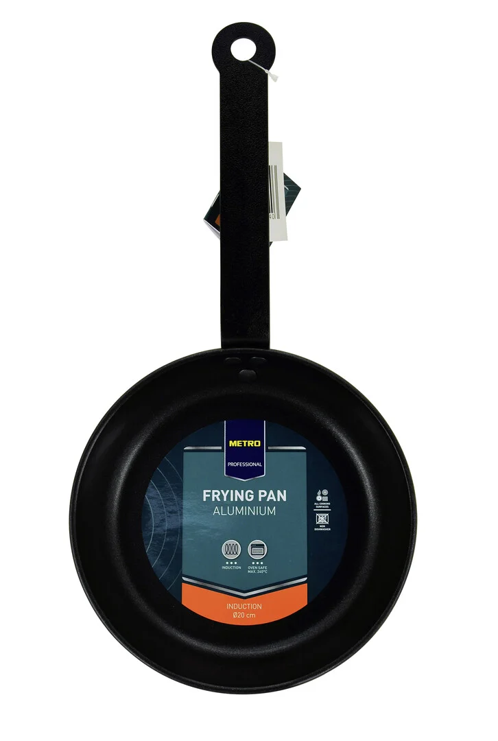 METRO PROFESSIONAL Сковорода, 20 см подходит для приготовления всех видов пищи профессиональными поварами и домохозяйками. Благодаря высокому качеству и прочности посуда станет хорошим помощником на вашей кухне. Изделие выполнено из штампованного алюминия, что гарантирует долговечность и стойкость к механическим повреждениям. Антипригарное покрытие способствует комфортному приготовлению различных блюд, а также облегчает очистку после использования. За счет минимального количества масла пища получается более здоровой. Благодаря диаметру 20 см вы сможете готовить большое количество блюд, что особенно удобно во время семейных обедов или приемов гостей. Сковорода рассчитана для всех видов плит, в том числе индукционные. Сделанная из безопасного сырья, эта ??осуда будет служить вам долгие годы, радуя вкусными блюдами.