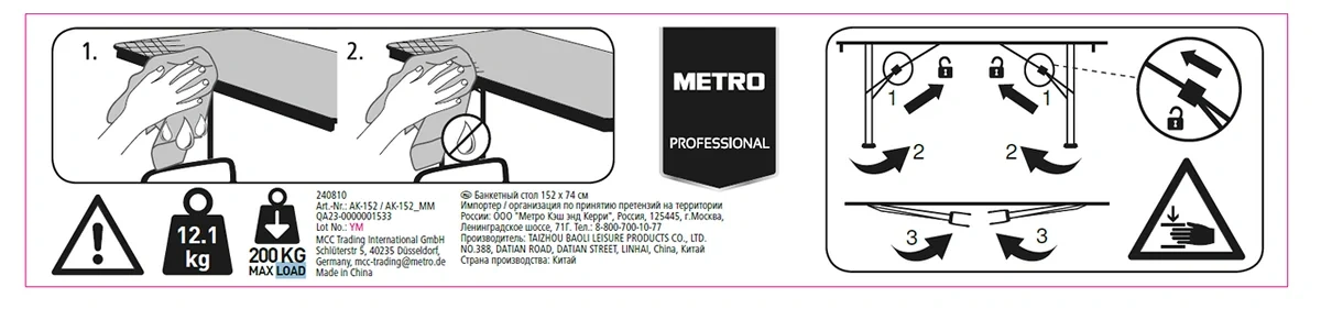 Стальная рама с порошковым покрытием. Максимальная нагрузка: 200кг. Изделие выполнено из качественного пластика с каркасом из стали и складывается в одно движение. В собранном состоянии не занимает много места, поэтому его удобно как хранить, так и транспортировать.