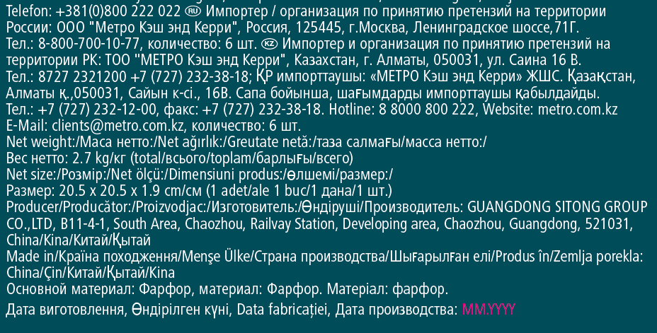 Изделие из высококачественного фарфора повышенной прочности устойчиво к образованию царапин от столовых приборов, не впитывает запахи и не окрашивается от продуктов, а также не темнеет с течением времени. Подходит для подачи десертов и закусок.