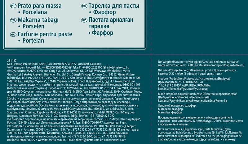 Тарелка Metro Professional Janina 27см, для пасты, 6шт/уп