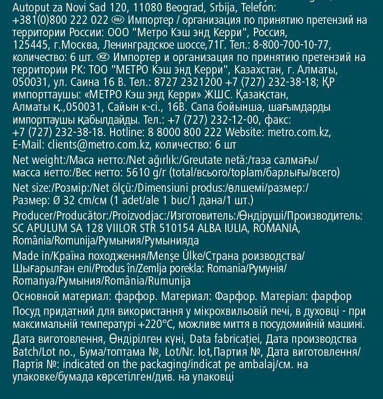 | Комплектация | тарелка для пиццы - 6 шт. |