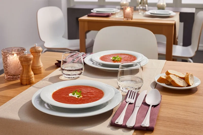 Материал обладает высокой стойкостью к ударам и царапинам. Он может выдерживать высокие температуры, что делает его подходящим для использования в духовках и микроволновых печах. Изделие гармонично вписывается в любой стиль интерьера: от классики до прованса, лофта, хай-тека, конструктивизма. Оно подходит для мытья в посудомоечной машине. При бережном уходе тарелка надолго сохраняет привлекательный внешний вид. Изготовлена из высококачественного фарфора, что делает ее идеальным выбором для сервировки супов, бульонов, крем-супов и других горячих блюд.