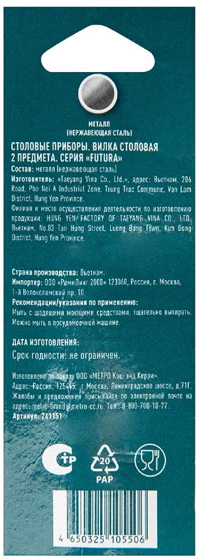 | Комплектация | вилка столовая - 2 шт. |