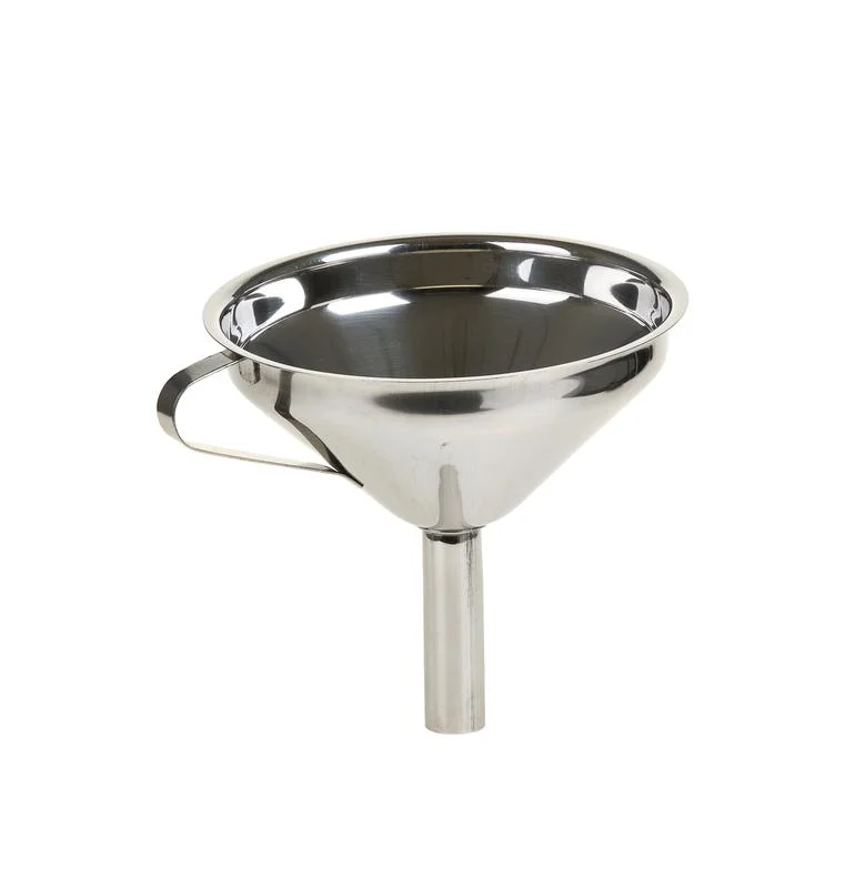 METRO PROFESSIONAL Воронка KW-III-K – удобное и эргономичное изделие. Воронка требуется, когда необходимо перелить или пересыпать продукты в емкость с меньшим горлышком. Удобная форма обеспечит безопасное и аккуратное перемещение жидкости, круп, сахарного песка или соли. Прочная ручка позволит держать воронку и даже при перемещении горячего не обжечься и не запачкать руки. Вес изделия составляет всего 110 г, поэтому использовать ее может даже ребенок. Воронка произведена из нержавеющей стали высокого качества, обеспечивающей прочность и долговечность аксессуара. Металл не впитывает запахи, не окрасится при переливании цветных жидкостей. Диаметр верхней части составляет 14 см, а горлышка – 1,5 см.