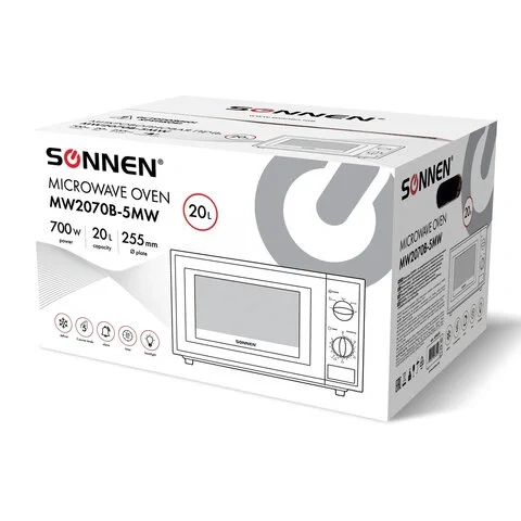 Микроволновая печь SONNEN MW2070B-5MW, 20 л, 700 Вт, таймер, механическое управление, белая, 454654