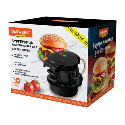 Бургерница-сендвичница электрическая антипригарная, съемная панель, 700 Вт, DASWERK, BM-1, 456333