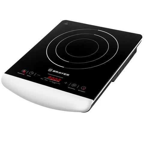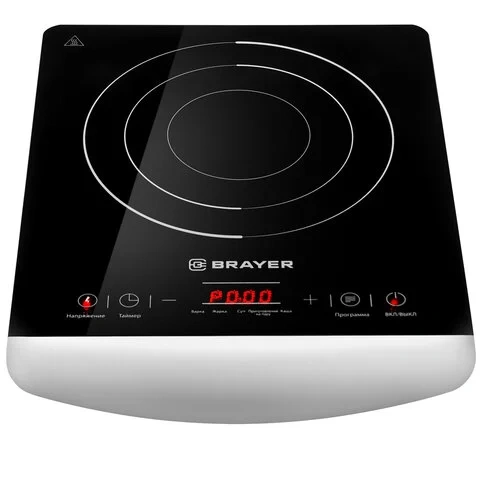 Настольная индукционная плита BRAYER BR2801, 2000 Вт, 5 программ, сенсорное управление, черная