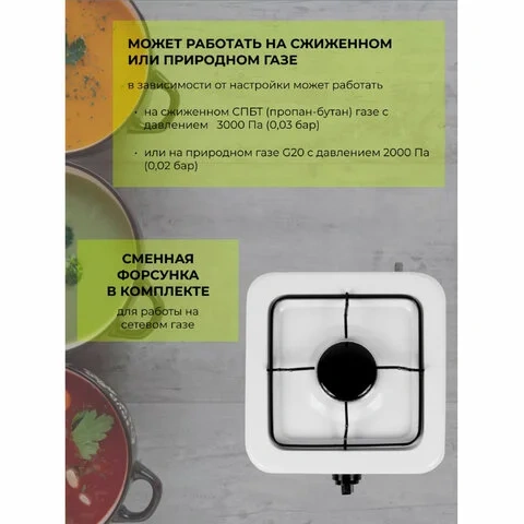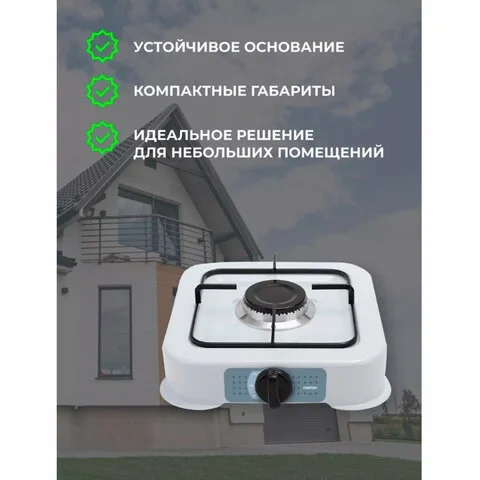 Настольная газовая плита CENTEK CT-1520, 1 конфорка, сменная форсунка (баллон/магистраль), белая