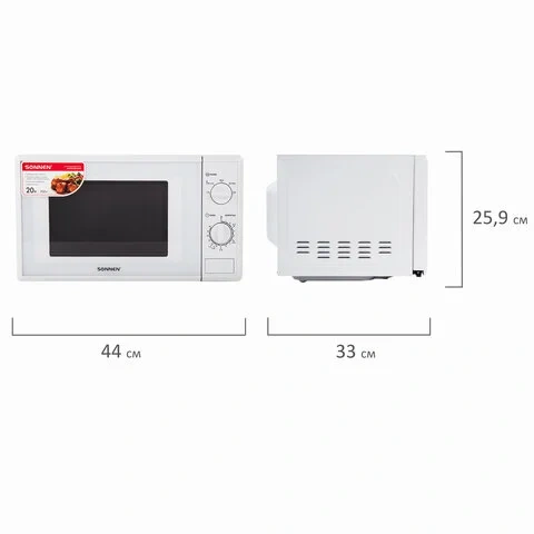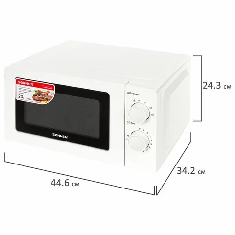 Микроволновая печь SONNEN MW2070B-6MW, 20 л, 700 Вт, таймер, механическое управление, белая, 454651