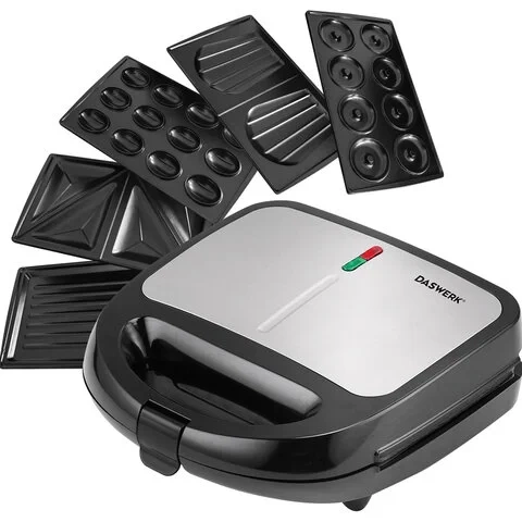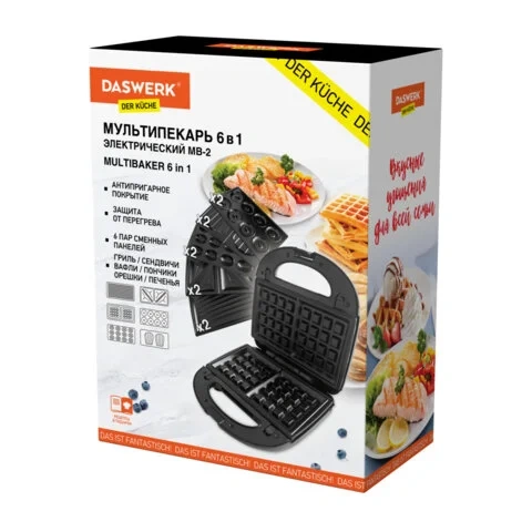 Мультипекарь 6 в 1, вафельница/гриль/орешница/сэндвич/пончики/печенье, 6 съемных панелей, 750 Вт, DA