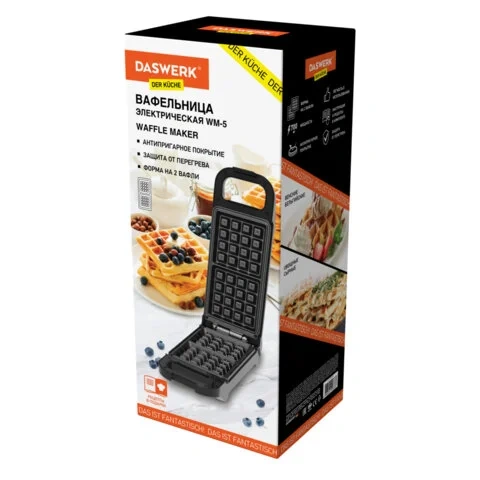Электровафельница антипригарная для венских и бельгийских вафель, 2 вафли, 700 Вт, DASWERK, WM-5, 45