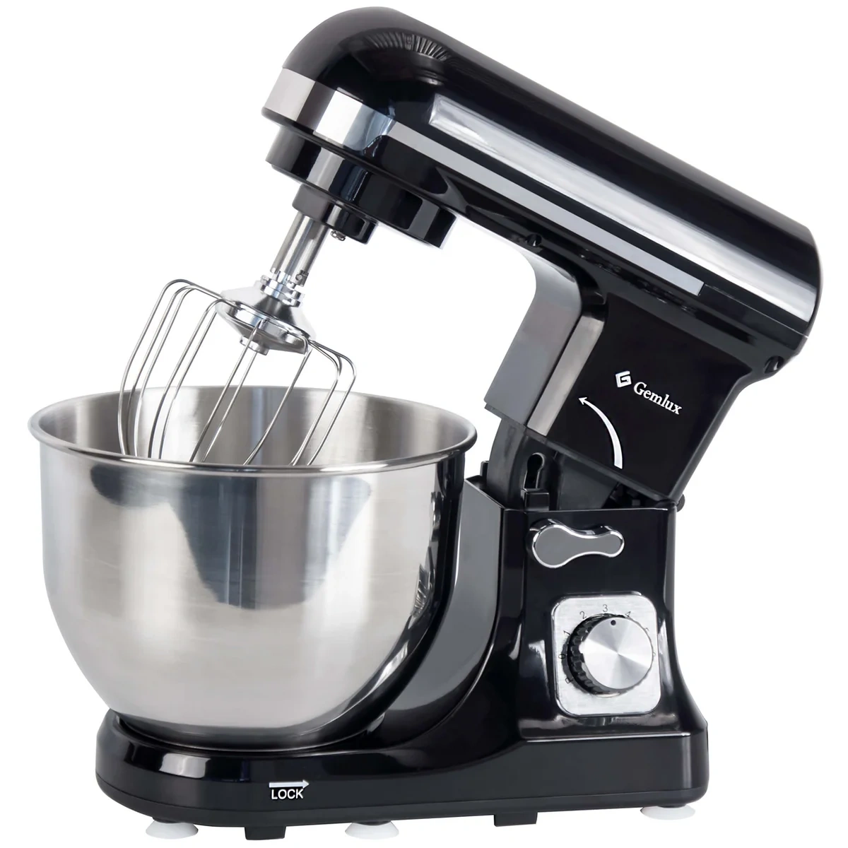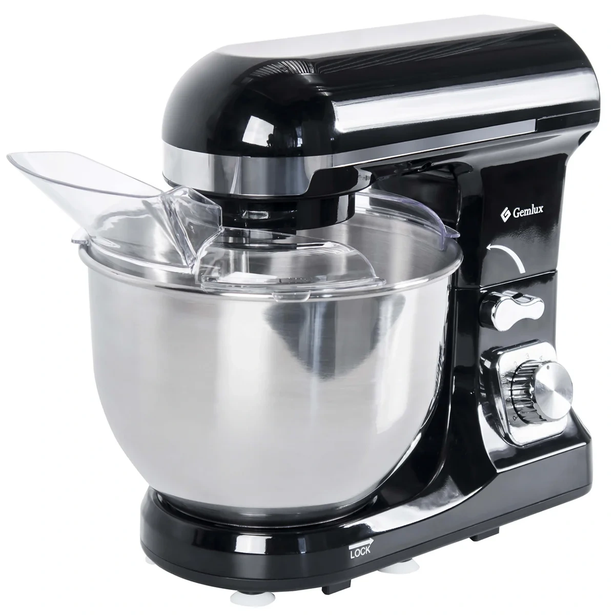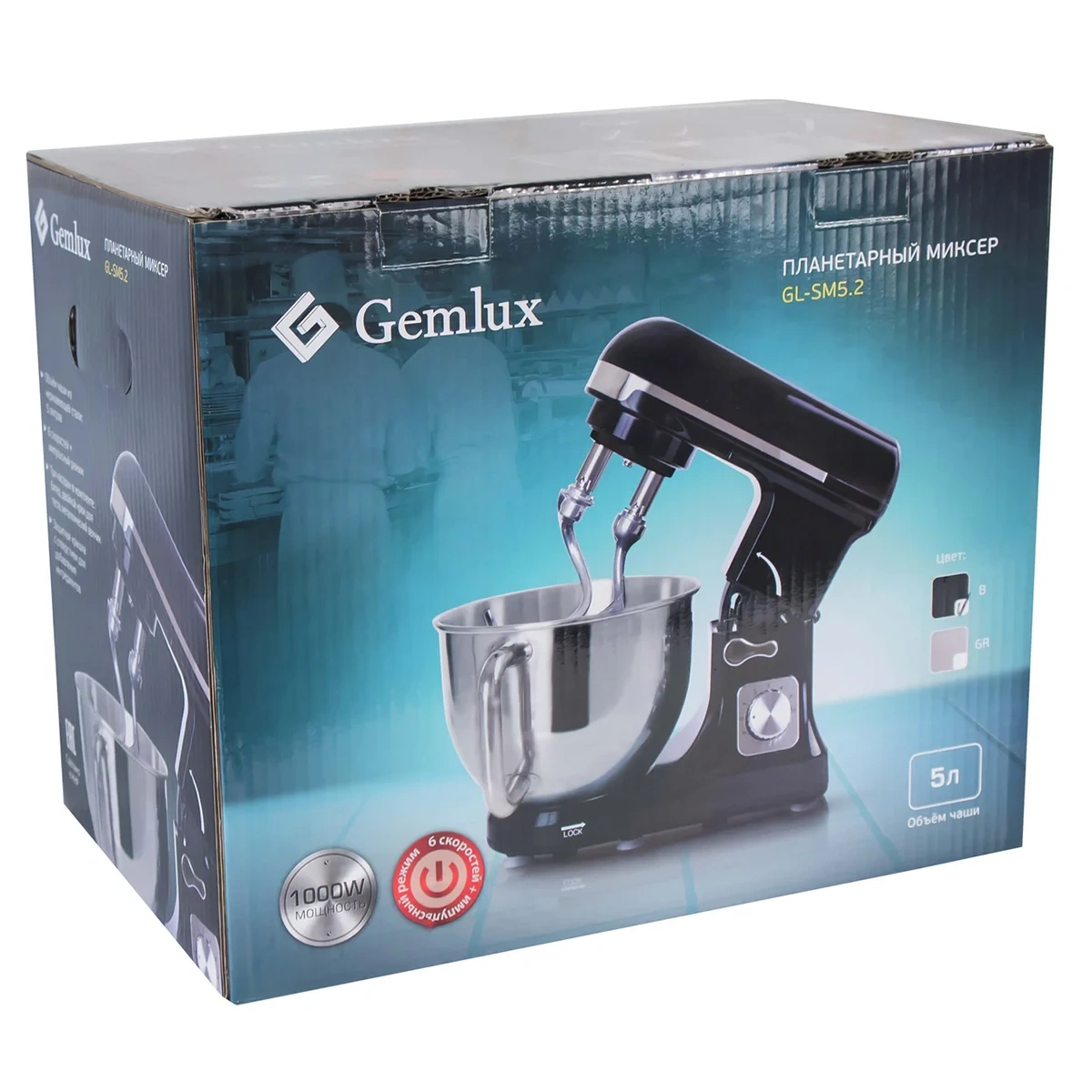 Настольный планетарный миксер Gemlux GL-SM5.2B предназначен для замеса дрожжевого и бездрожжевого теста различной вязкости, взбивания яиц, сливок, кремов и муссов, приготовления пюре, фарша и т.п. Эта модель с достаточно мощным двигателем (1000 Вт), шестью скоростями вращения мешалки и режимом пульс (кратковременное включение на максимальной мощности). В комплект поставки входят: съемная дежа (чаша) объемом 5 л из нержавеющей стали, защитная крышка дежи из прочного и не теряющего прозрачности с течением времени MS-пластика.