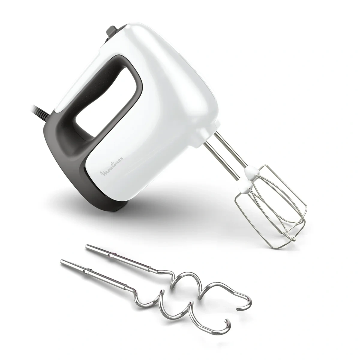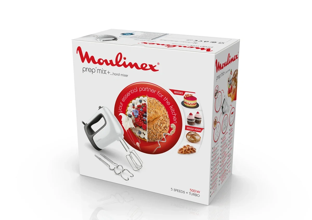 Миксер ручной Moulinex Prepmix+ HM460110 — незаменимый помощник на кухне. С его помощью можно готовить крем-супы, гаспачо, минестроне или соусы по типу бешамель, песто, болоньезе. Миксер пригодится при создании изысканных десертов, муссов, парфе, сорбетов или мороженого. Благодаря высокоэффективному мотору мощностью 500 Вт прибор гарантирует идеальное смешивание продуктов, жидкого и плотного теста для вафель, кексов и блинов. Миксер поможет приготовить разнообразные закуски: хумус, гуакамоле или песто айоли. Его также можно использовать для взбивания молочных коктейлей, смузи или фруктовых пюре. В комплект входят венчики и крюки для теста, выполненные из высококачественной нержавеющей стали. Они помогают быстро взбивать любые заготовки: от яичных белков и взбитых сливок до теста для пиццы. Пластиковый корпус миксера Moulinex Prepmix+ хорошо противостоит внешним негативным факторам: воздействию влаги, пыли, механических нагрузок, УФ-излучения и перепадов температуры. Модель запрограммирована на пять скоростей, также предусмотрен турборежим для интенсивного смешивания или измельчения ингредиентов. Съемные венчики снимаются одним движением руки и очищаются в посудомоечной машине. Такой подход экономит время и силы после приготовления блюд. Компактные размеры позволяют хранить прибор в любом месте: кухонном шкафу, на полках, в пенале и с удобством переносить с собой.