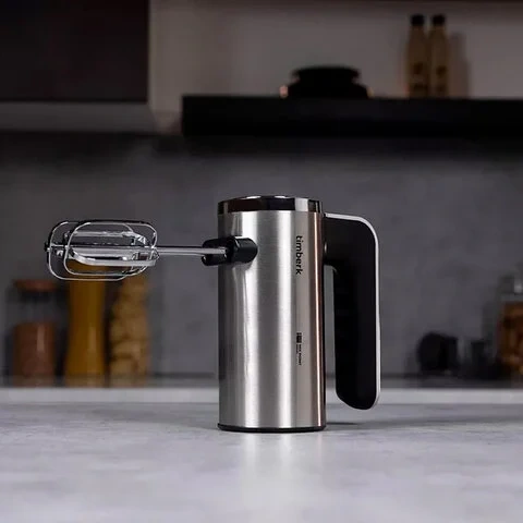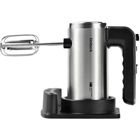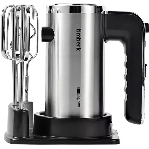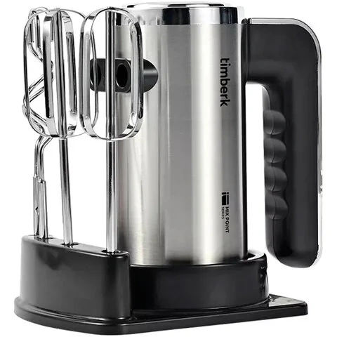 Миксер TIMBERK T-HM40S49, 550 Вт, 5 скоростей, 2 венчика, 2 крюка для теста, подставка, стальной