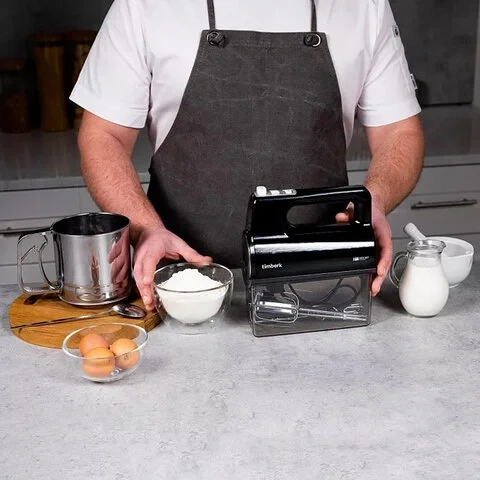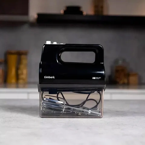 Миксер TIMBERK T-HM40S50, 700 Вт, 5 скоростей, 2 венчика, 2 крюка для теста, контейнер, черный