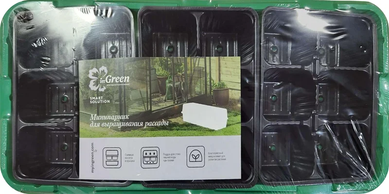 Компактный мини-парник идеально подходит для выращивания рассады в домашних условиях. В комплекте: форма с ячейками под рассаду, поддон для стока лишней воды при поливе и крышка для создания благоприятного микроклимата для быстрой всхожести и роста рассады.