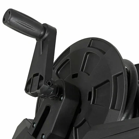 В комплект входит удобная катушка для хранения шланга. Мойка установлена на колеса для легкого перемещения и доступа к воде.