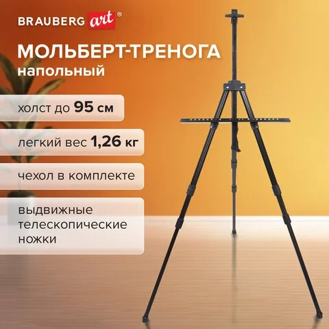 Мольберт алюминиевый BRAUBERG ART 'CLASSIC', усиленный, тренога, переносной, размер в разложенном ви