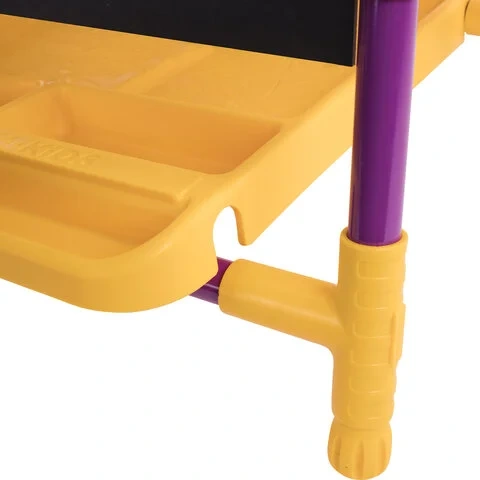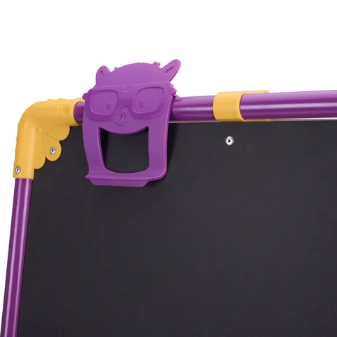 Поверхность мольберта белого цвета предназначена для рисования специальным маркером для белой доски, а также для размещения магнитов; черная поверхность - для рисования мелками. Для детей старше 3-х лет. Регулируется по высоте от 73,5 до 107,5 см для удобства использования детьми разного возраста и роста. Размер рабочей поверхности: 53х46 см. Цвет: сиреневый.