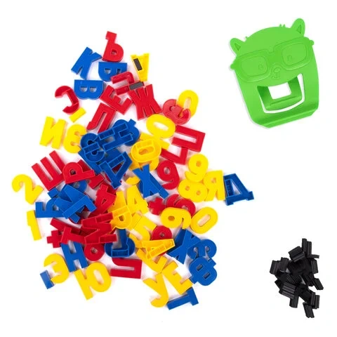 | Комплектация | держатель для мела, набор цифр, знаков и букв, полка для принадлежностей, цветные мелки |