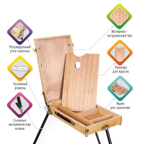 Этюдник-мольберт из бука настольный с ящиком, 38х28х55 см, высота холста до 45 см, BRAUBERG, 192250