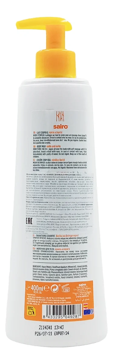 Молочко для тела Sairo Ваниль-масло ши, 400мл