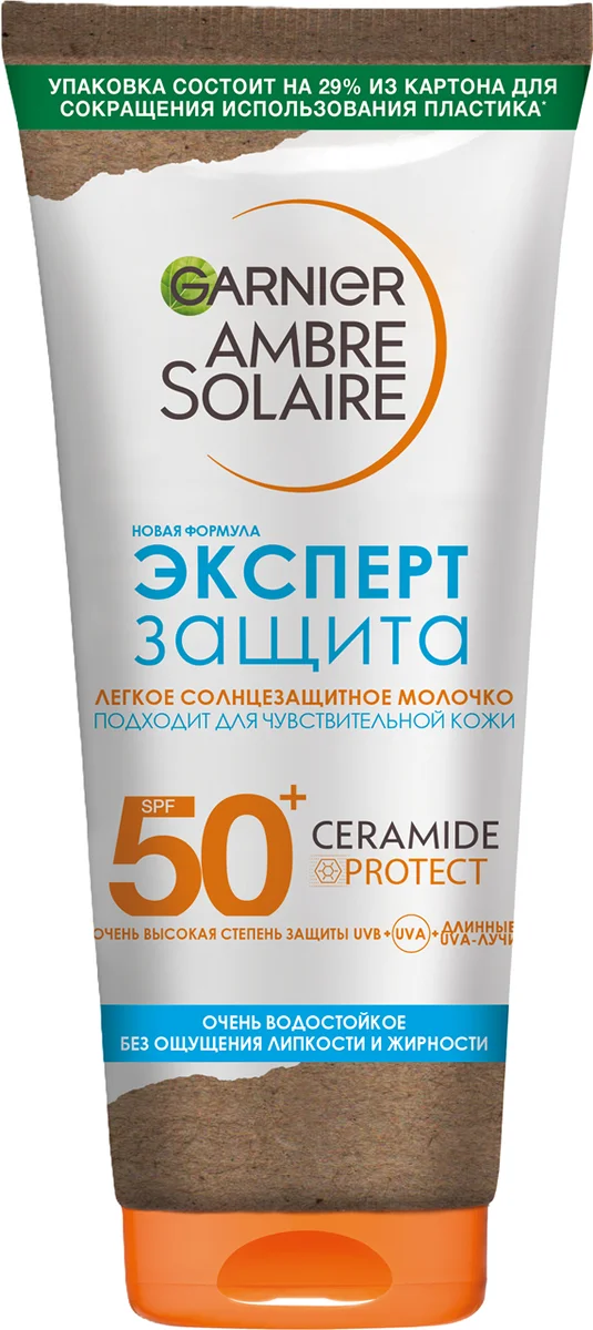 Легкое солнцезащитное молочко Эксперт защита SPF 50+ для лица и тела специально разработано для чувствительной кожи. Оно надежно защищает от UVB, UVA и длинных UVA лучей, способствует защите от возникновения солнечных ожогов и преждевременного старения кожи, вызванного солнцем. Эко-разработанная упаковка - данная упаковка содержит на 48% меньше пластика по сравнению с предыдущей версией пластиковой упаковки.