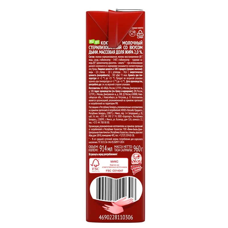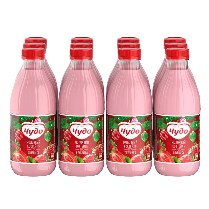 Коктейль молочный Экомилк с клубникой 2%, 900мл