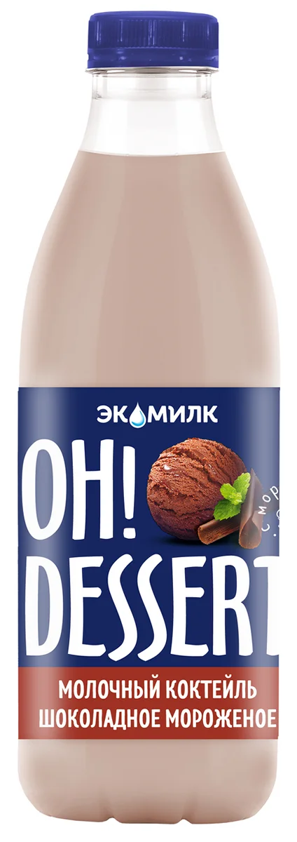Коктейль молочный Экомилк с шоколадным мороженым 2%, 900мл