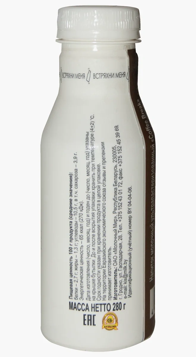 Напиток молочный Coffee Break Латте ультрапастеризованный 1.3%, 280г