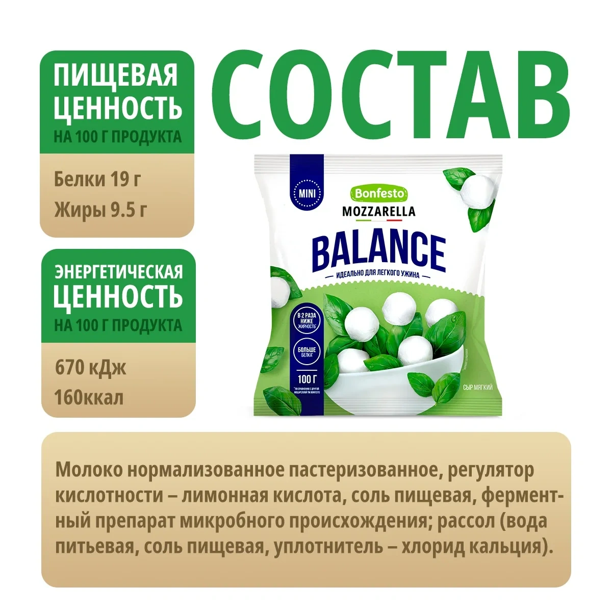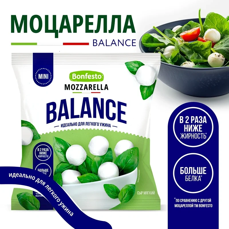 Сыр Bonfesto Mini Balance Моцарелла 30%, 100г