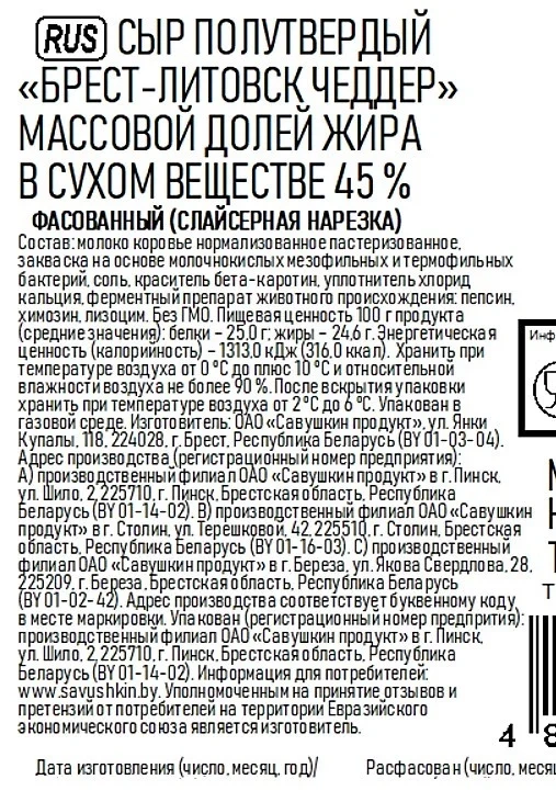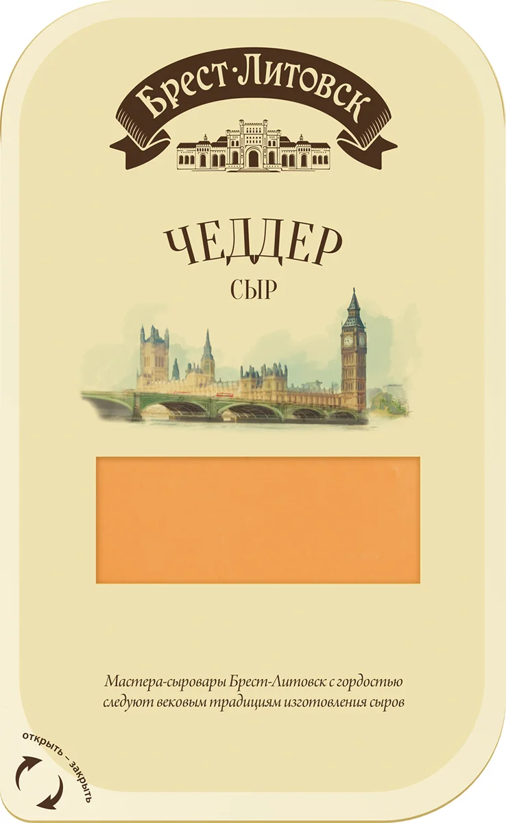 Сыр Брест-Литовск Чеддер полутвердый нарезка 45%, 130г