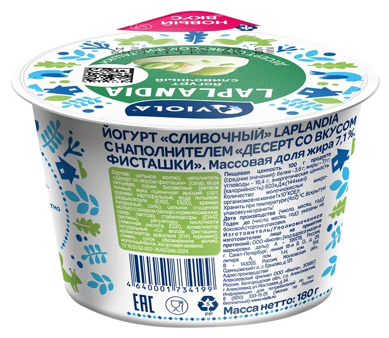Йогурт Viola Laplandia фисташка 7.1%, 180г