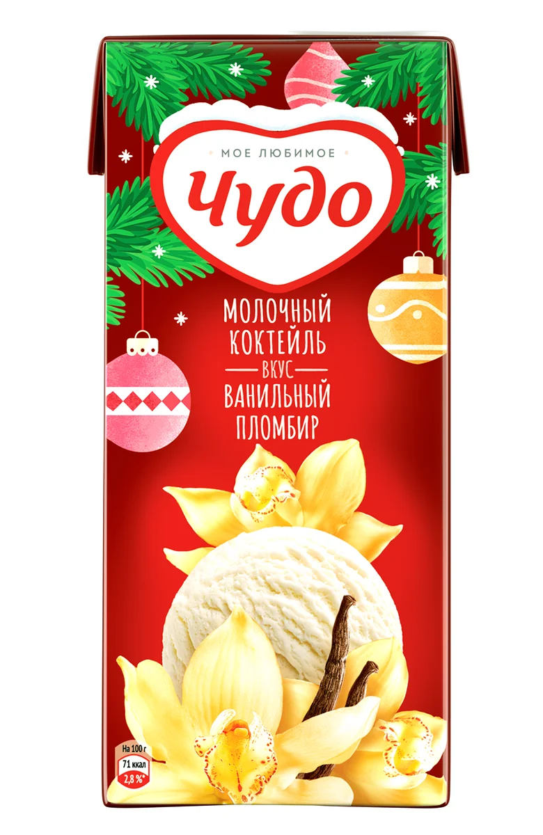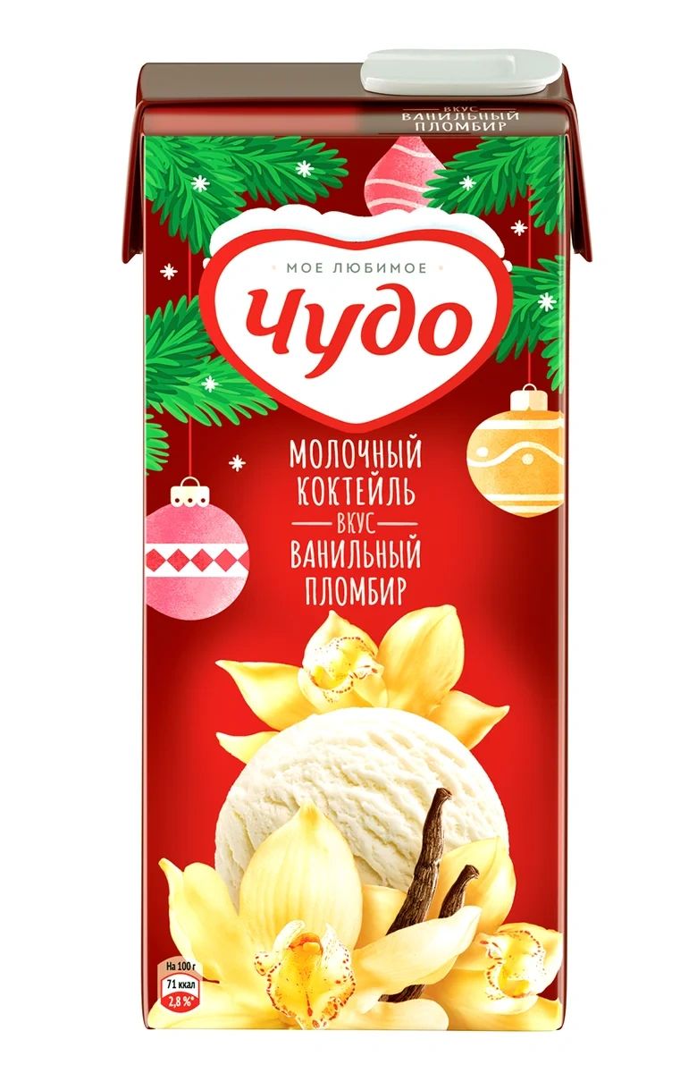 Коктейль молочный Чудо ванильный пломбир 2%, 960г