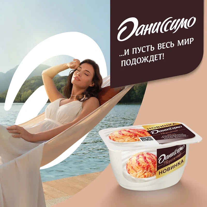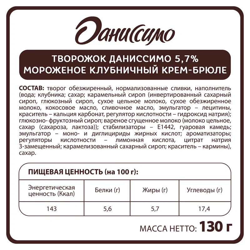 Продукт творожный Даниссимо с клубникой и кремом-брюле 5.7%, 130г