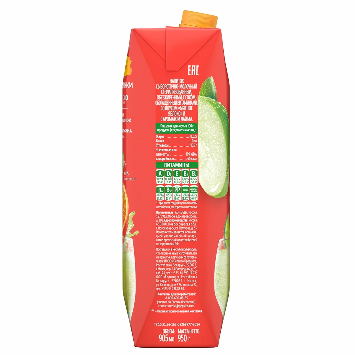 Напиток сывороточный Мажитэль Мятное яблоко, 950г